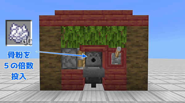 むかご1個につき骨粉は5個必要なので、発射装置には5の倍数投入すると無駄がありません