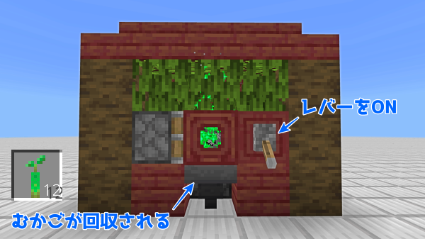 ⑥②の動作をし、ピストンによってむかごがアイテム化します