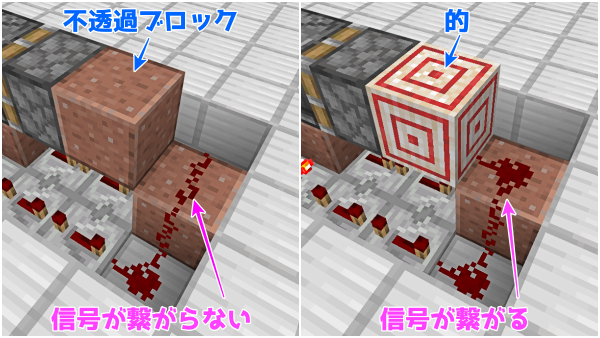 また、的は不透過ブロックにすると信号が繋がらないので使っています