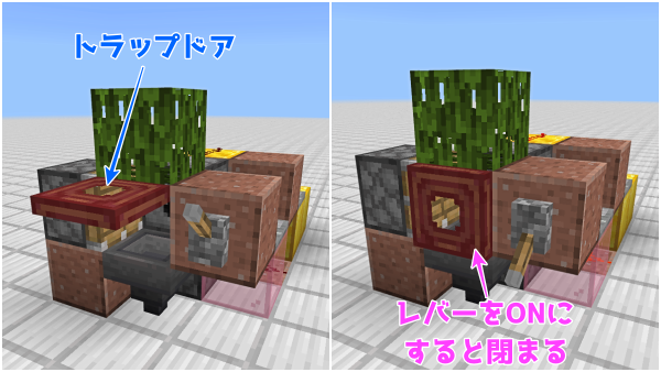 7. アイテム化したむかごが飛び出ないようにトラップドアを設置します