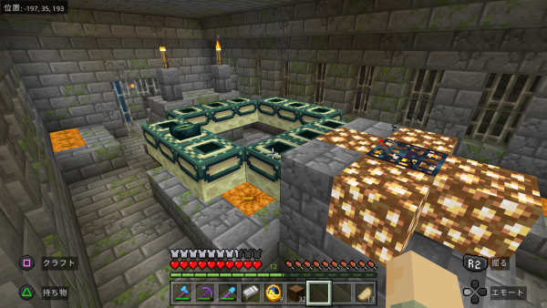 今回は既にフレームに1個嵌ってるのと、エンドポータルを探すための分が必要ないので11個用意しました