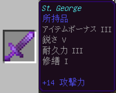 あと、ウィザー戦のときに剣に名前を付けたので、今回もイングランドの国旗の由来元でもあり、ドラゴン退治をした聖ジョージから名付けてみました