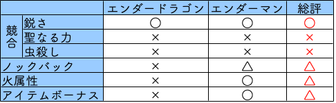 火属性はエンダーマンに効果がありますがエンダードラゴンには効果がないので無理してつける必要はないかなと思います