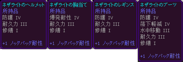 ネザライトの防具はノックバック耐性が付いているので、エンドラの体当たりに効くかなと思います