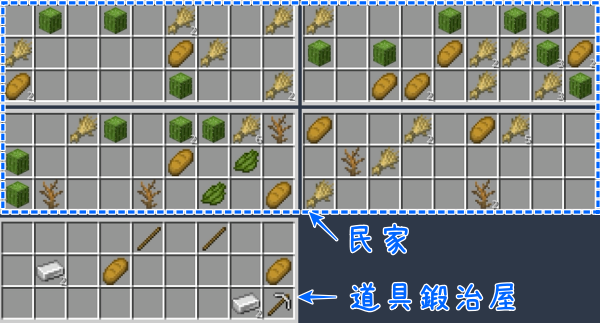 武器鍛冶屋のチェストにもサドルが入ってたりするのですが、残念ながらこの村には武器鍛冶屋はありませんでした