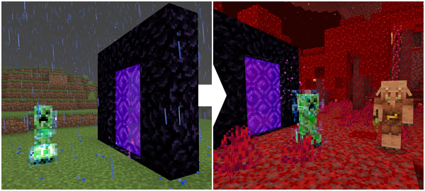 ピグリンをオーバーワールドに連れていく逆パターンもアリですが、十数秒でゾンビピグリンに変わってしまうので、帯電クリーパーをネザーに連れていった方が良いかなと思います