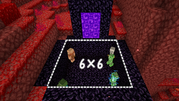 これでモブをネザーまで連れてくる動線ができたわけですが、このゲートで自分も出入りするのは危険です(集めたモブの中に自分も飛び込むことになるので)