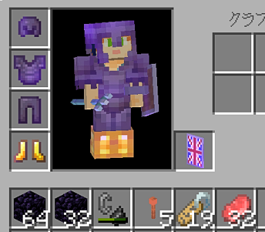 - ネザライト防具:背後から襲われた時にも安心。防護Ⅳ、爆発耐性Ⅳ付き