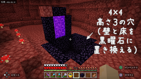 ということでネザーゲートを移設しました(旧ゲートは破壊)